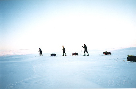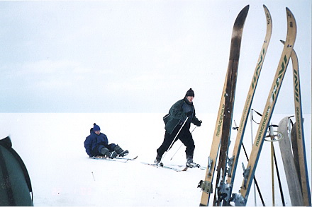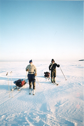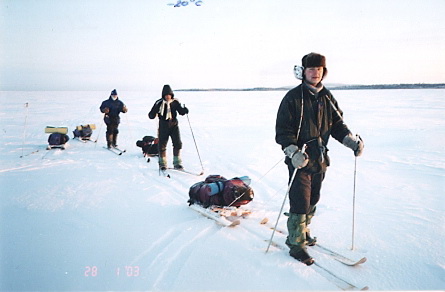 Небо за ночь затянуло. Спорый шел снег. Мороз удерживался. Если верить словам дядьки, того с противопожарного поезда, надвигаются крепкие морозы до –400С. Во время уехать– большое искусство. Свое дело мы сделали: план выполнили, Белое Море посмотрели, освоили лыжно-санный способ передвижения, закрепили навыки ночного ориентирования при наличии минимального количества объектов, на которые можно опереться глазом. Пора домой. А рассказать в итоге про поход-то и нечего. Да, был он экстремальный, вровень Карельскому Перешейку, ну Русское Поле экспериментов, разумеется, потяжелее. С голоду не дохли, под лед никто не проваливался, писаться от страха не приходилось – толщина льда сантиметров тридцать, не то, что на Ладоге.