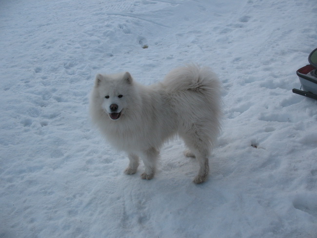 Он находился в узкой долине, со всех сторон зажатой горами, на берегу замерзшего озера на высоте 1173м. На въезде нас встречала лайка, которая, не смотря на грозный вид, была абсолютно добродушной, откровенно скучала и с удовольствием общалась с обывателями.