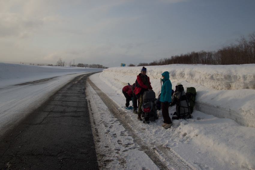 По Паратунке во всем ощущается близость людей, ближе к ПП начинаются базы отдыха. После "Надежды" дорога стала напоминать стиральную доску и скорость совсем низкая. Стемнело. Вдоль дороги много "буранок" – почти снегоходное шоссе. По рекомендации Сергея нас завезли дальше поселка "Термального" (изначальный план) к базе "Рассвет". Тот же Сергей снабдил нас консервами и собрал 5000 руб. пожертвований.
