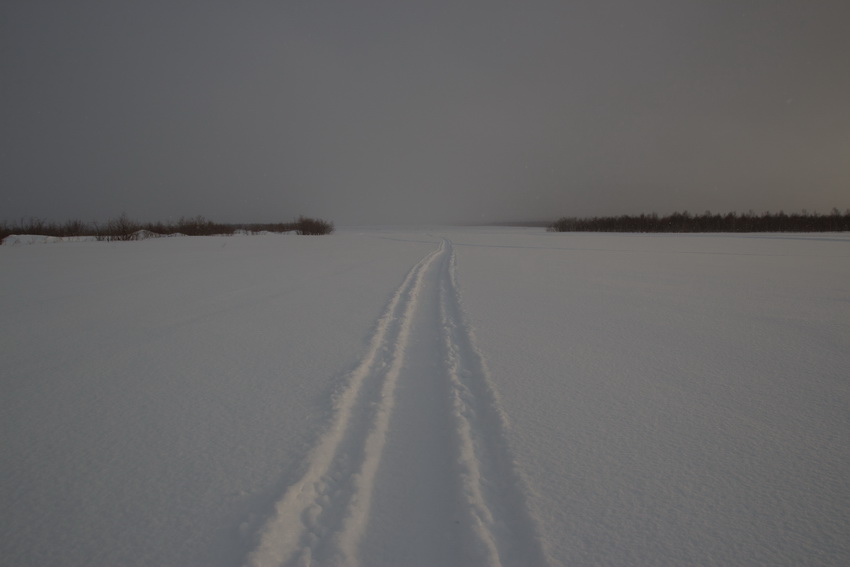 Утром проспал. Вышли ~10-00. Дорога укатана снегоходами и они носятся взад-вперед.