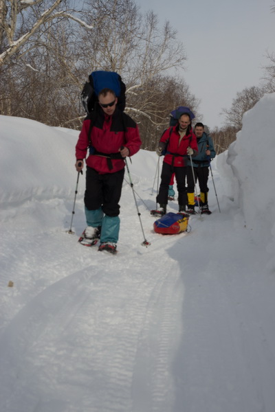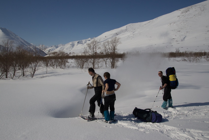 6. В снегоступах ходить по Камчатке вполне удобно, особенно в гору, но если подразумеваются длинные ровные участки или спуски, то лучше лыжи. Местные к снегоступам относятся скептически (даже министр спорта и туризма).