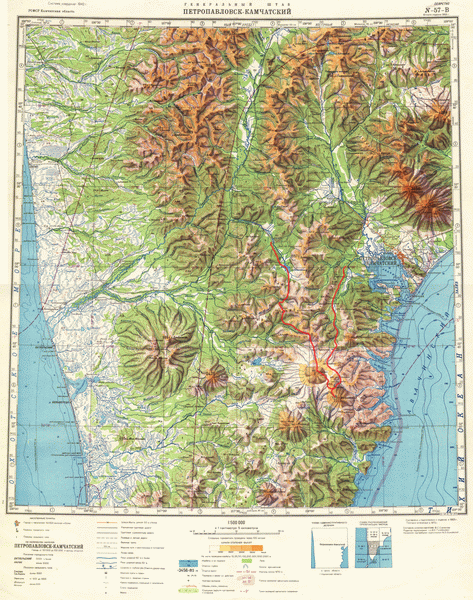 Прилетели ~13-00. Погода – сказка (~0, солнце). Самолет перед посадкой как будто хотел показать всем краевиды и прошел над бухтой обеими бортами. Снова потери – при получении багажа выяснилось, что в рюкзаке раздавился тюбик с клеем. Загрузились в автобус и бодро поехали не в ту сторону. Отрабатываем забытую операцию загрузки-выгрузки из/в общественный транспорт. Саша поехал в Петропавловск (ПП) регистрироваться в КСС (на его мейлы из Минска они упорно не отвечали), а мы – в Елизово искать бензин (лучше "Калошу") и разведывать автобус на Начики (по карте - нежил.)