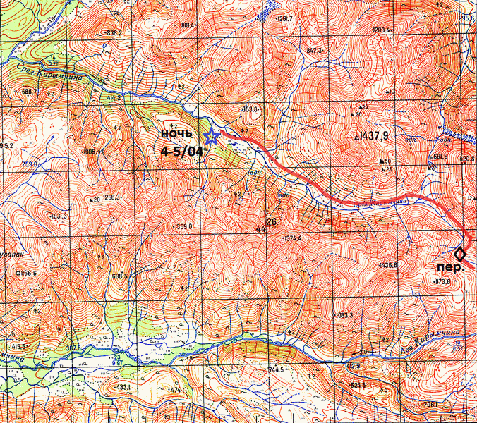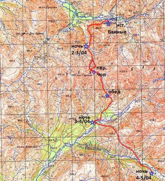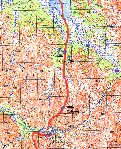 1/04 (пн) 2-ой день Перевал Табуретка – р. Банная