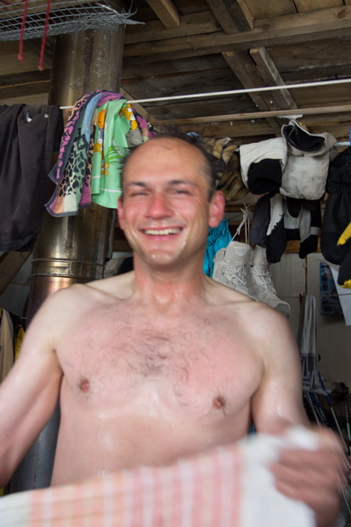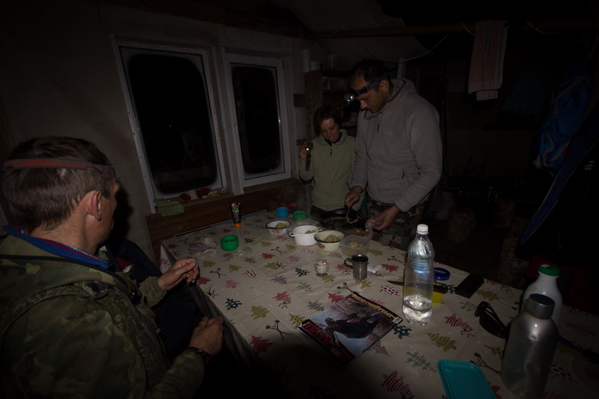 Проснулся от гидробудильника ~9-00. Домик ночью ощутимо дрожал - звук как от камнедробилки. Селезнев топит печь. Пьем остатки какао от Игоря с Карымчинских. Я тотально опух. "Звено Шуры" пошло спать. Я с Егоровым греюсь у печки, иногда пьем чай и жуем сухарики. Общая апатия и упадок сил. Пошел подремал.