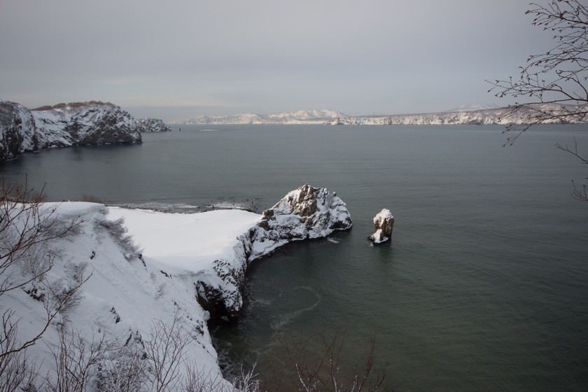 Петропавловск за 9 лет мало изменился: те же 5-ти этажные хрущовки с натянутым между домами бельем, та же мегапробка на единственной улице, грязь и сугробы. Появились нарядные супермаркеты. Нас довезли в район бухты Завойко, дальше микроавтобус не проедет.
