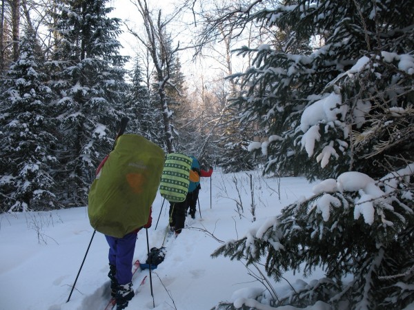 Погода стояла идеальная для лыжного похода. Глаза слепило яркое солнце, а лицо, казалось, треснет от мороза. Но к сожалению этими прелестями зимы наслаждались уже другие туристы. А наш путь теперь лежал домой.