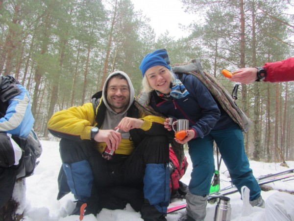 Около 12.00 сделали обеденный привал. Миша неожиданно достал шампанское в стекле. Костя варил фирменный кофе. Трапезничали до ярко-выраженной дрожи.