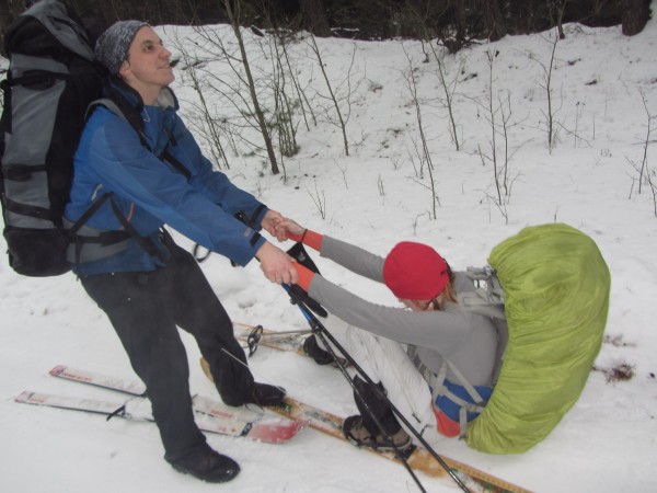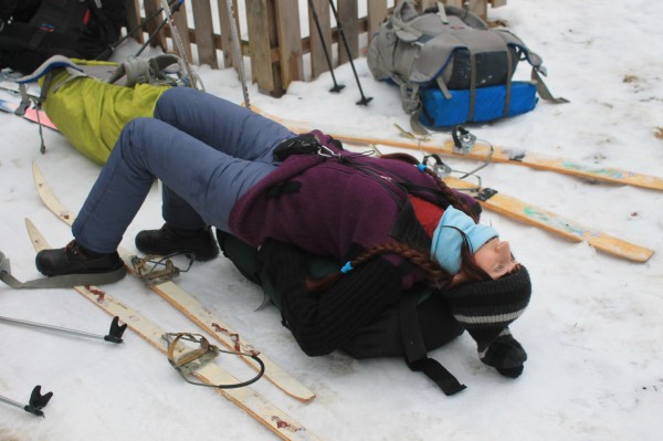 Ехалось нескладно. Несуразно, косолапо, угловато, мешковато. То и дело слышались пока радостные возгласы падающих. Особенно радовалась Наташа Дубровская и Костя: по рассказам, на беговых лыжах сложно держать равновесие с тяжелым рюкзаком, с ним же и вставать довольно проблематично. К сожалению, я так и познала сути этого таинства – не упала ни разу.