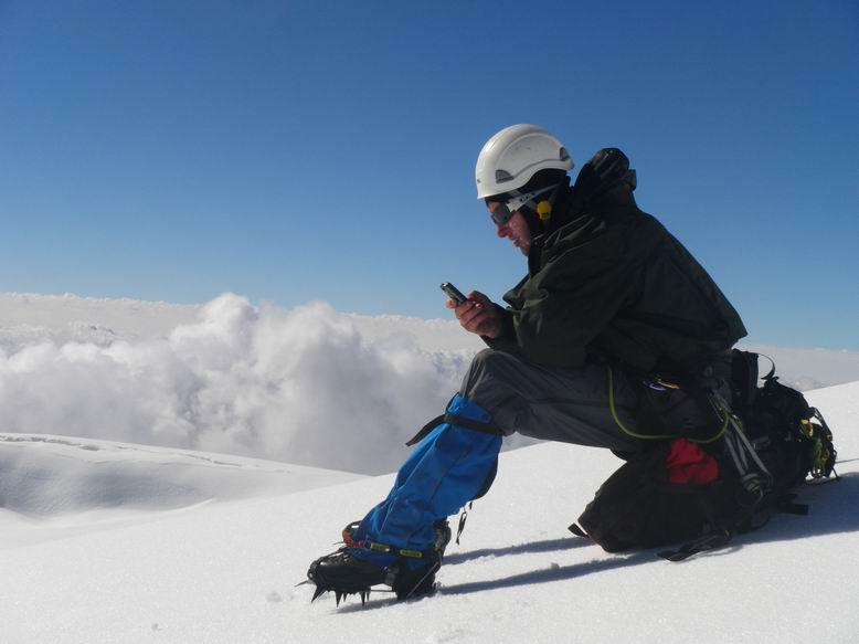 На перевале в сторону ледника Чалаат (около 4100-4150м) ловит мобильная связь, как русских, так и грузинских операторов.