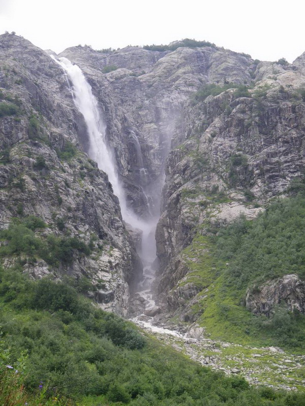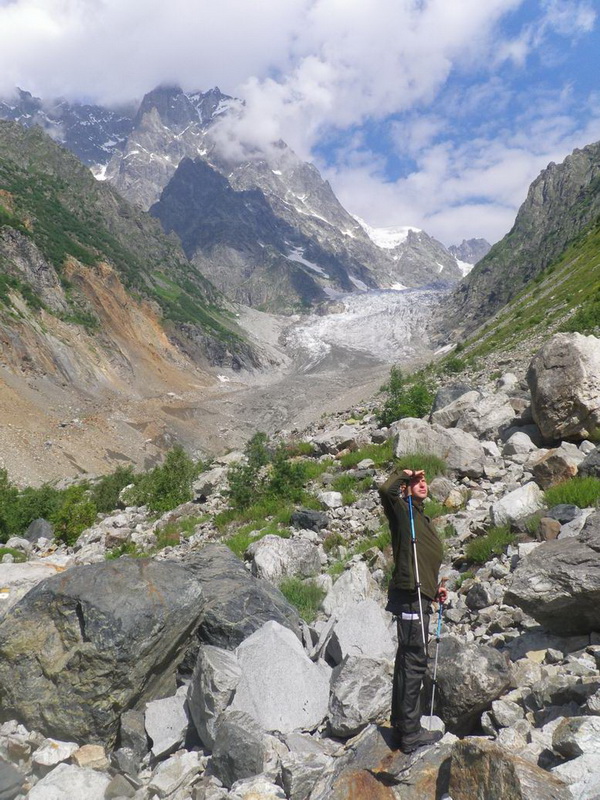 Дальше – пешком через погранзаставу под Ушбинский ледник на охотничьи ночевки. Живописно, через долину водопадов, но подъем – крутой «тягунец» физически выматывает. Пешочный.