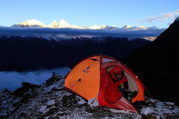 "Пролезли десять веревок, около 400м по перепаду, встали на ночевку. Лежим в палатке".