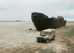 Самый большой интерес поездки представляет собой все-таки погибающий Арал. В конце 80-ых годов впечатляли фотографии в журнале Огонек. Корабли, стоящие среди пустыни, на бортах которых написано «Арал вернись». После появился душещипательный фильм «Псы». В фильме «Игла», где играл Цой, главный герой идет купаться на море, но его не находит. Вместо этого среди пустыни величественно стоит большой ржавый сухогруз. «Корабль…Где же твоя команда? А куда делось море?» - фраза из фильма.